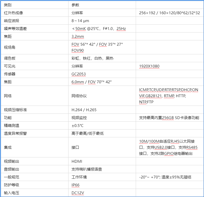 DY-ITM205雙光熱成像攝像機,搭載高清可見光及紅外熱成像機芯,可同時進行可見光視頻監控和紅外熱成像溫度監測,全面采集被測目標的視頻、溫度信息。