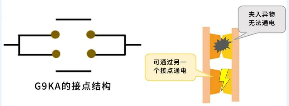 歐姆龍G9KA繼電器低接觸電阻0.2mΩ實現這個目標所面臨的重大課題之一便是接點上的異物,接點上一旦存在異物則會妨礙電流的通道,從而導致低電阻升高。
