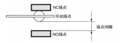 接點間隔是微動開關的設計目標,歐姆龍根據市場要求,將接點間隔定為0.25mm、0.5mm、1.0mm、1.8mm:4種,一般接點間隔的標準為0.5mm。