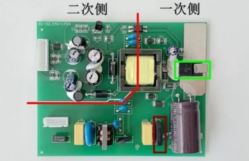 先從電源板這邊說起,首先這個產品是 220V 交流供電,而后需要輸出一個 24V 的直流電壓,所以整個電源板就是去做這部分工作。