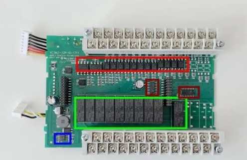 其次,這 IO 接口板上我們也可以發現此 PLC 是基于繼電器的輸出,這里的話采用的歐姆龍的繼電器(型號為 G5NB-1A-E-DC24<綠色>