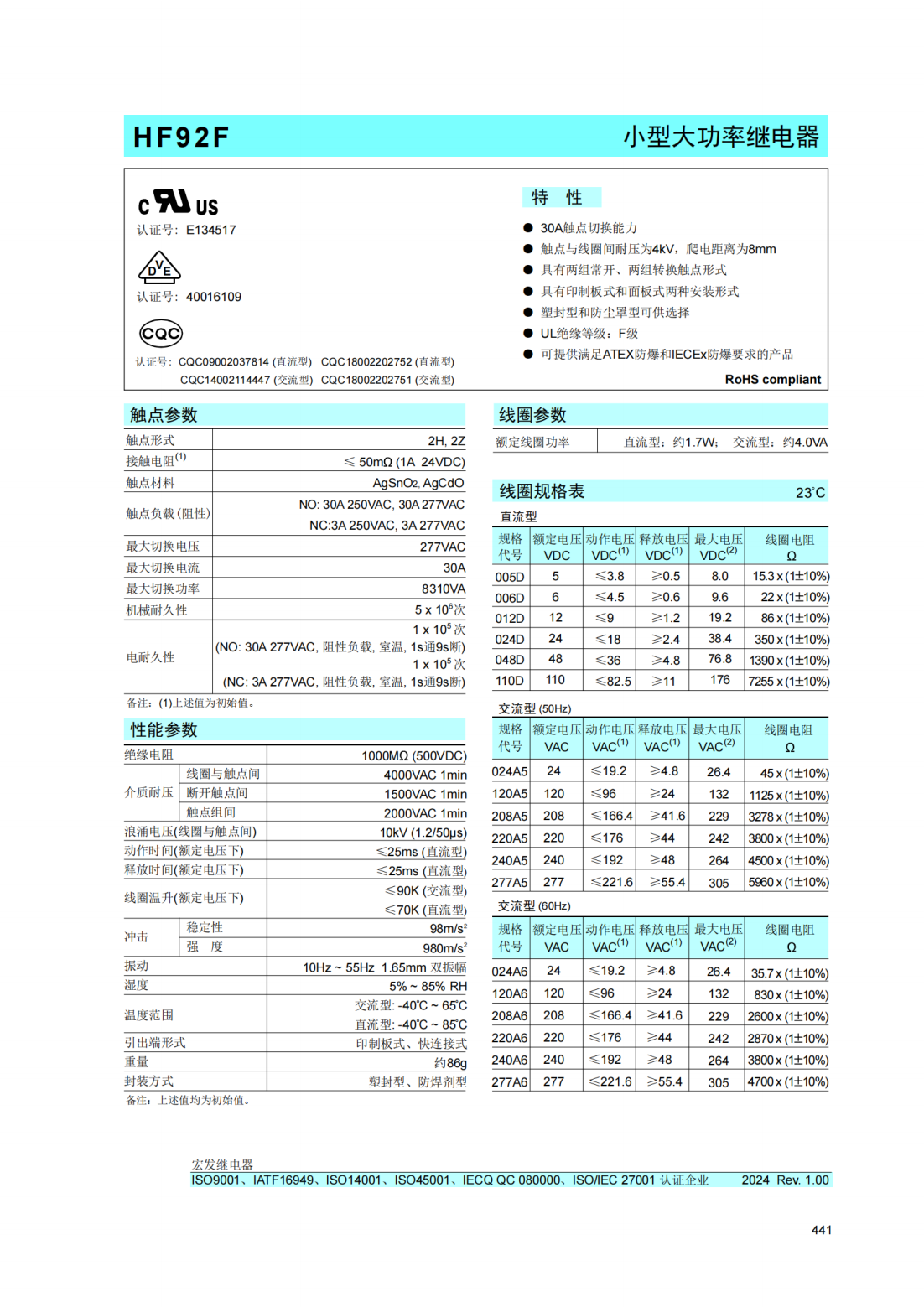 HFD23-012-1ZS4宏發繼電器