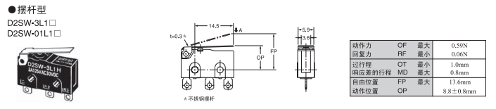 D3VJ小型微動歐姆龍開關